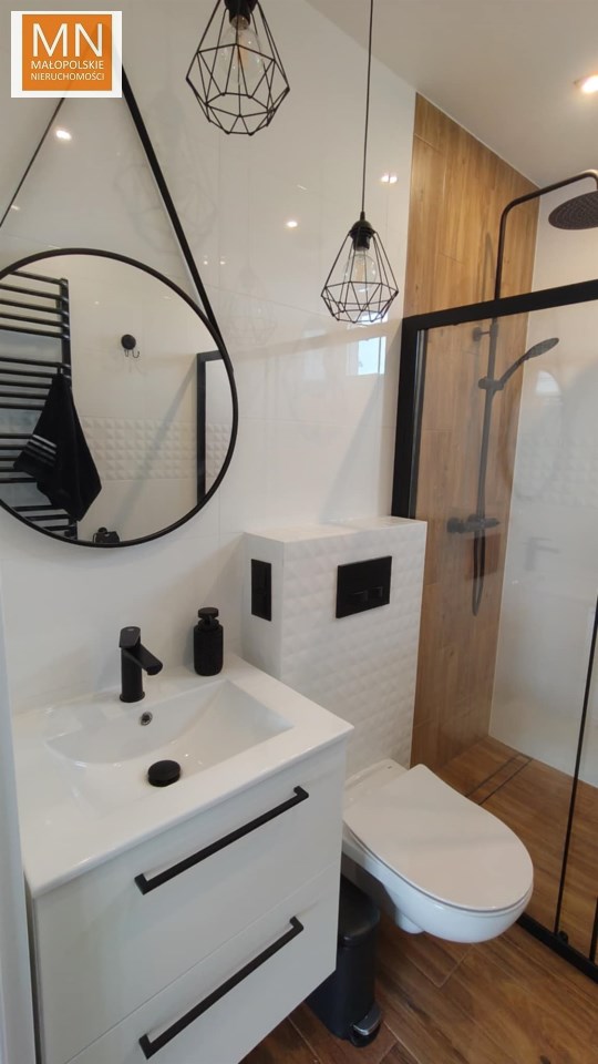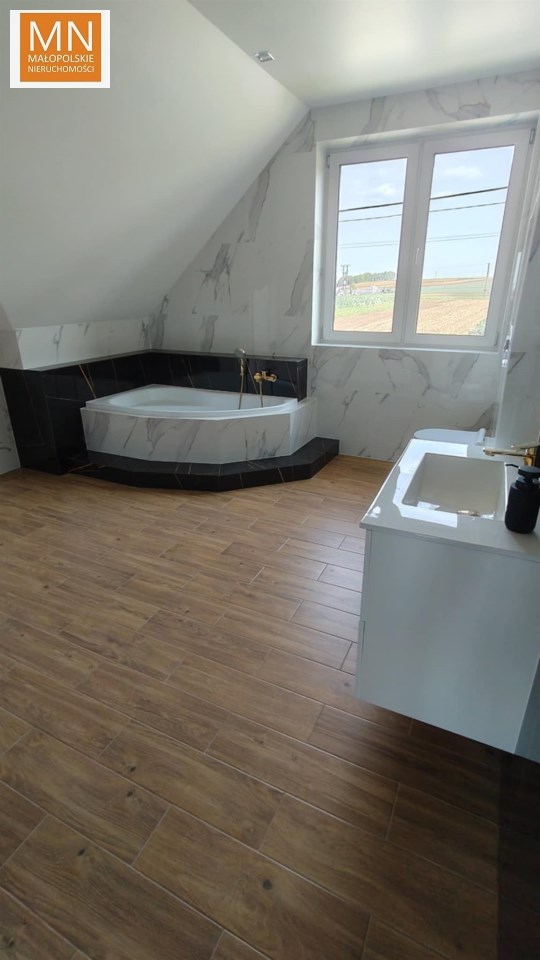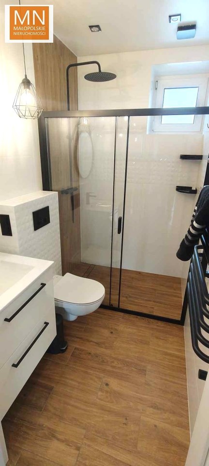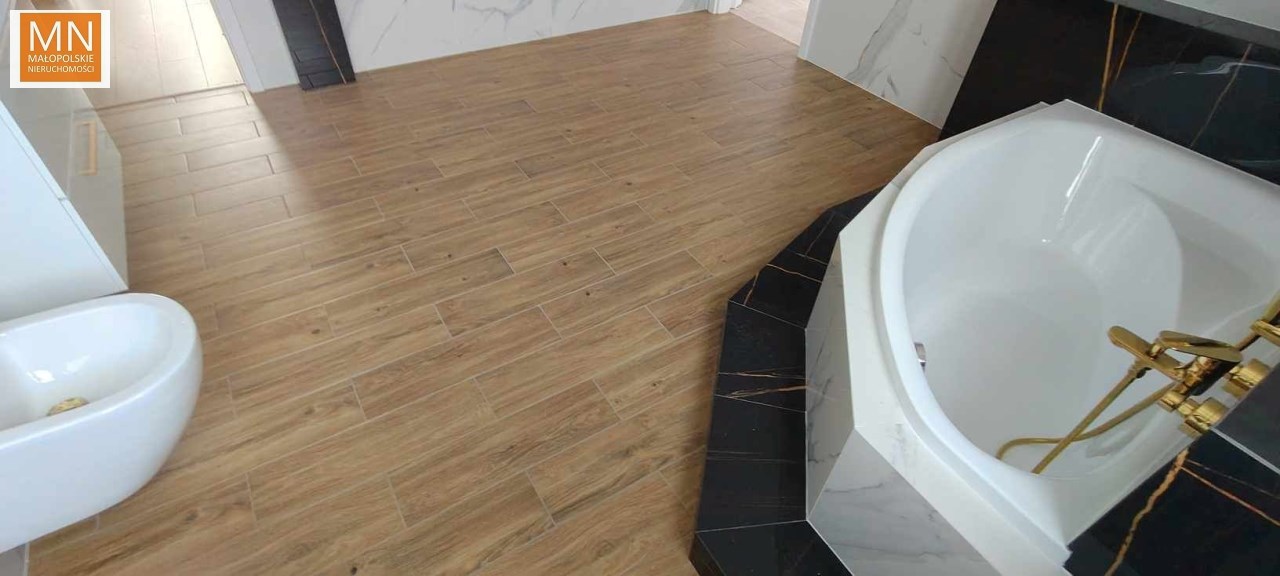 Poza tym na parterze znajduje się łazienka z dużym prysznicem/odpływ liniowy/ oraz wnęka na szafkę, za garażem jest kotłownia z wyjściem na zewnątrz.