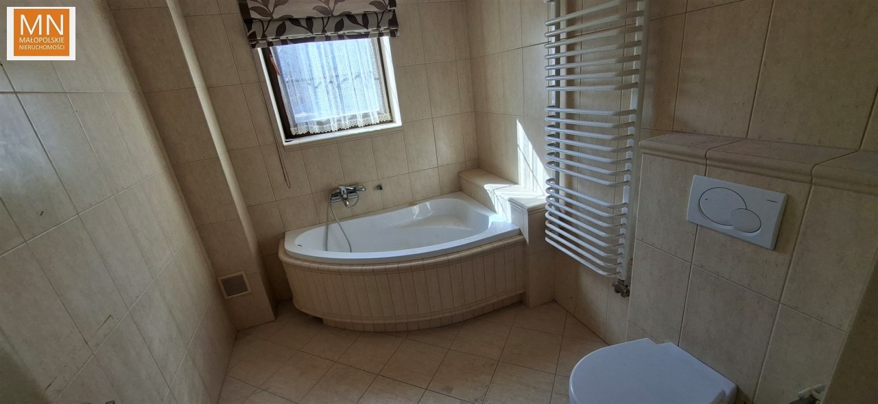 Na piętrze znajduje się bardzo przestronna sypialnia z osobną łazienką, trzy niezależne pokoje, dwa mają wyjście na balkon oraz druga przestronna łazienka. Drewniane podłogi, jasne wnętrza, wysokiej jakości materiały wykończeniowe spełnią oczekiwania wymagających klientów. Dom sprzedawany jest w obecnym stanie ( jak na zdjęciach ).