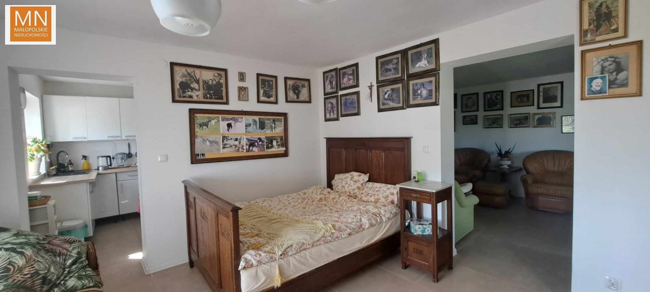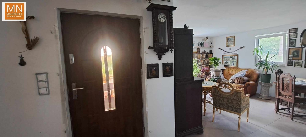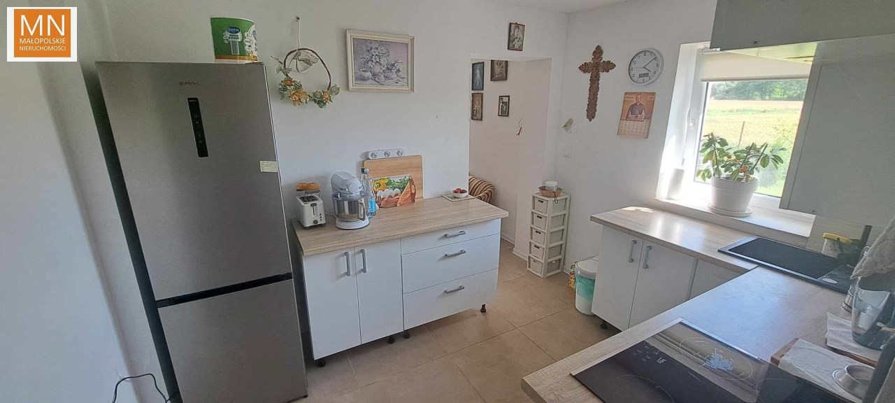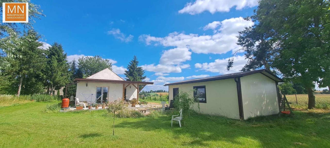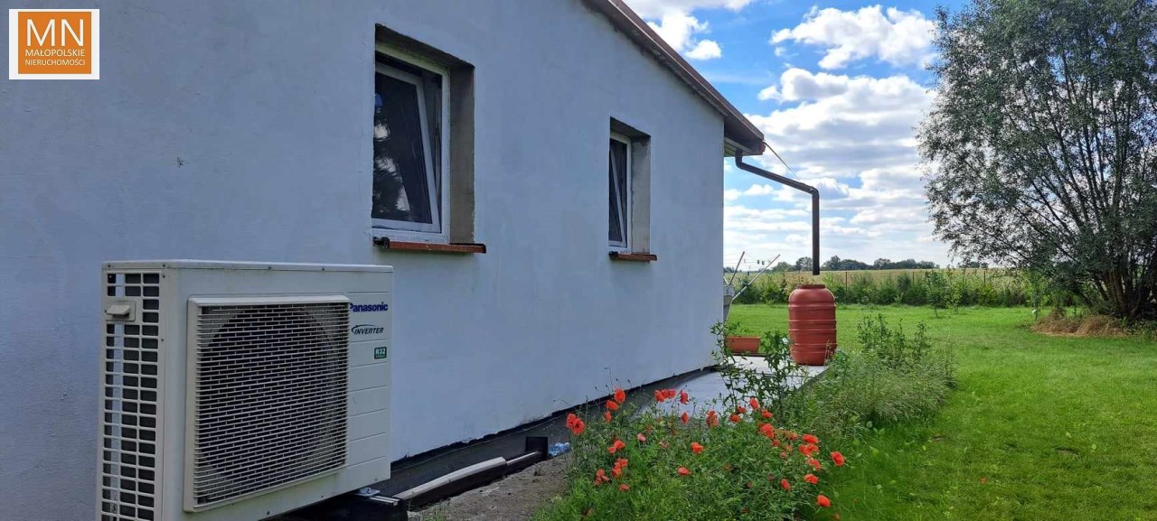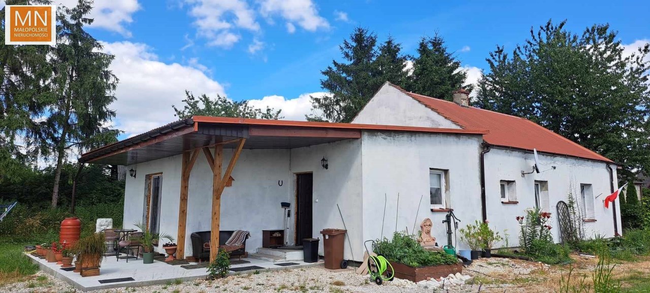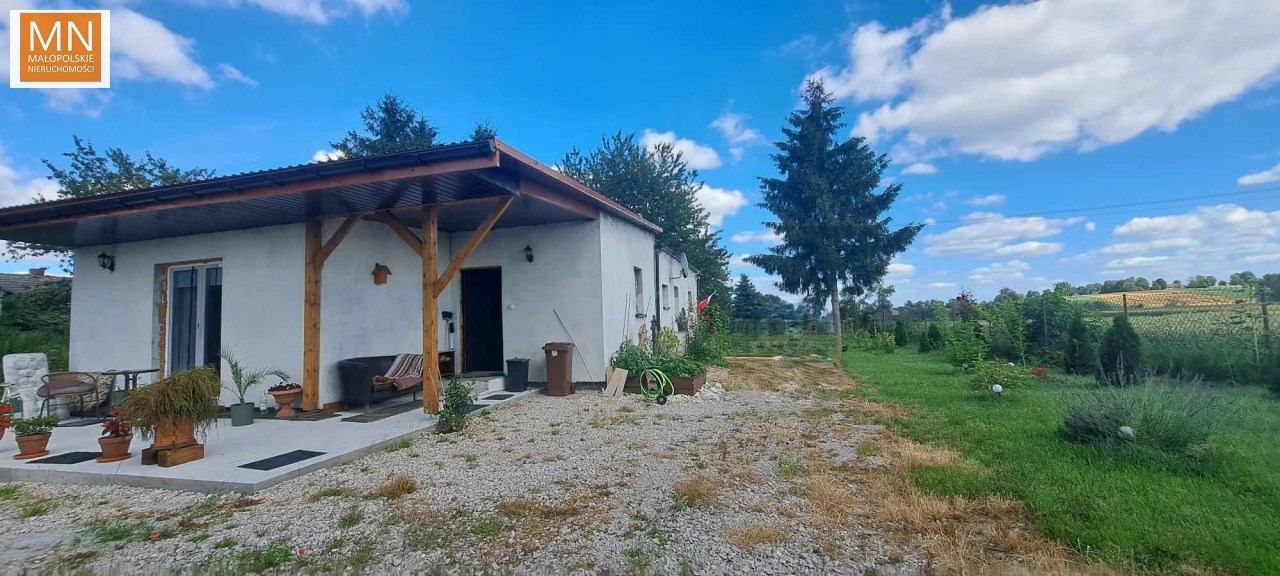 Na sprzedaż PARTEROWY DOM o pow 115m2 , położony na 29 arowej działce ( 16,9a obecnie dzierżawiona dla rolnika)w zielonej okolicy, tylko 14km do Kazimierzy Wielkiej, do Koszyc 6km, Kraków 55km.