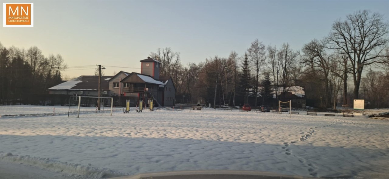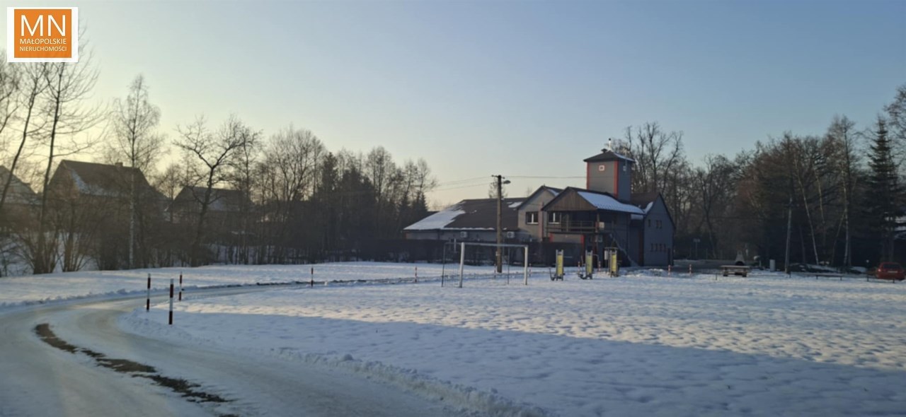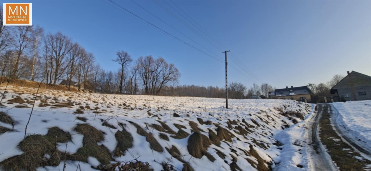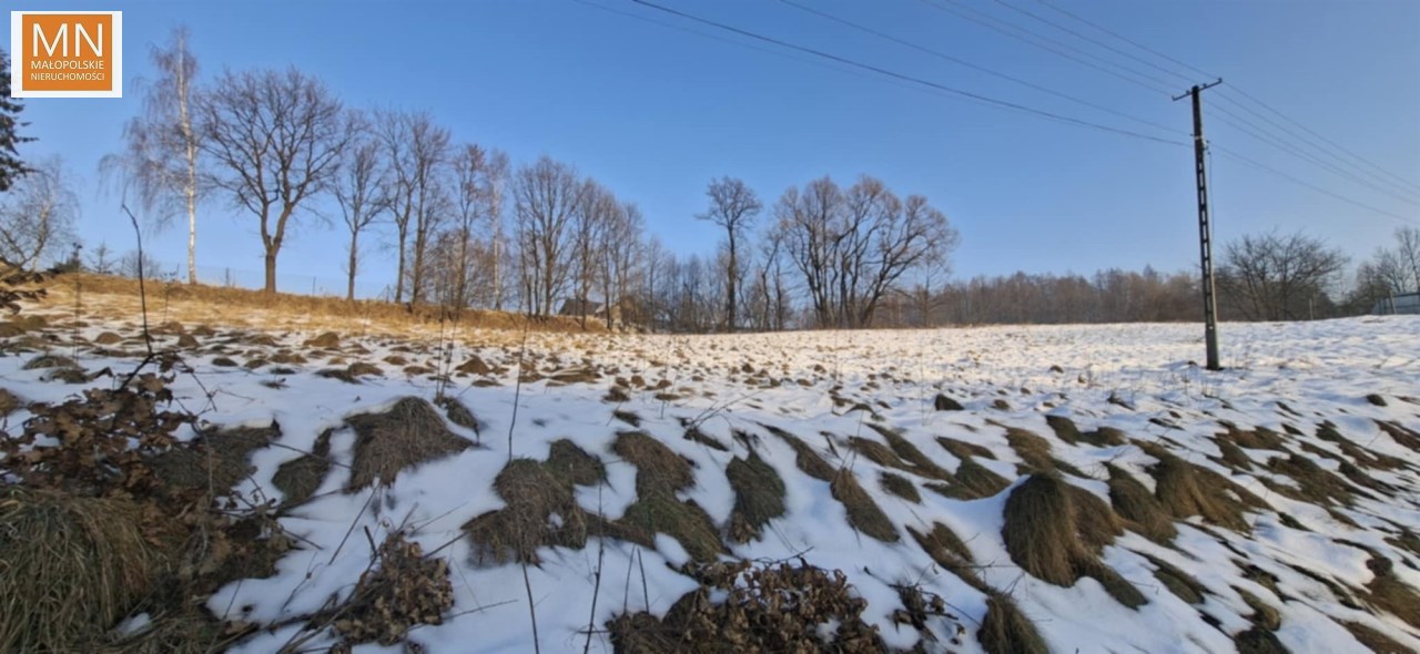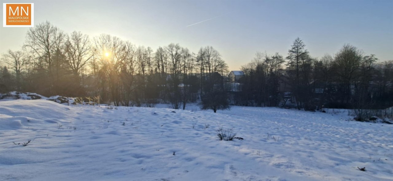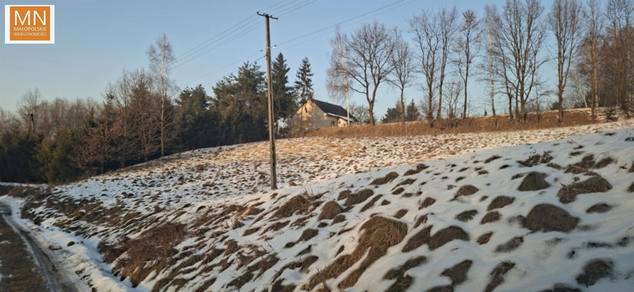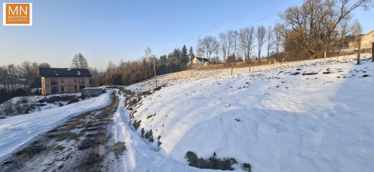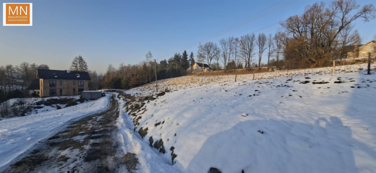 Działka na wzniesieniu, na tyle daleko od głównej drogi ( 250 m ) że jej nie słychac i na tyle bliziutko, że szybko można się włączyc do ruchu i dojechac do sklepu, szkoły czy do Krakowa na A4, lub w kierunku Kalwaria Zebrzydowska , Wadowice, Myślenice.