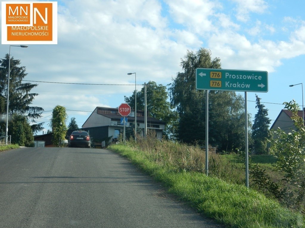 Działka położona w cichej i spokojnej okolicy na wzniesieniu, skąd rozpościerają się piękne widoki.Tylko 2 km do Posądzy, połączeń BUSa, 2 km do Koniuszy, 3km od miejscowości Proszowice i 23 km od Krakowa (częste połączenia komunikacyjne).
