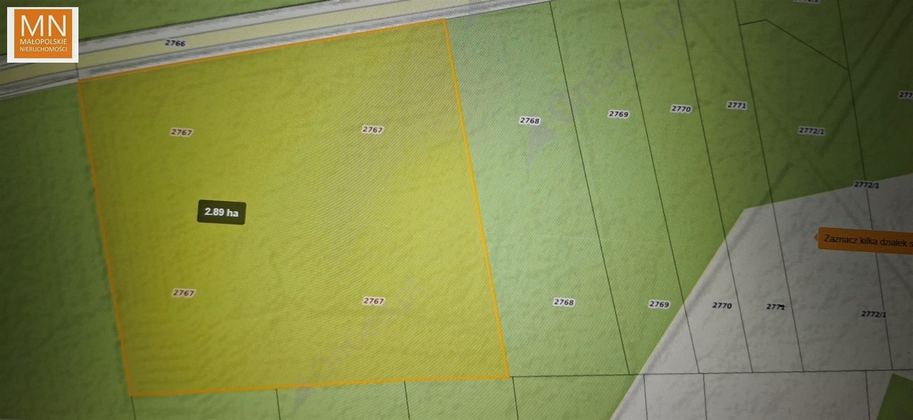 Do zaoferowania działka leśna, inwestycyjna, z możliwością utworzenia żwirowni, o powierzchni 2,89ha położoną w miejscowości Borzęcin przy drodze asfaltowej /droga 964 kierunek Dąbrowa Tarnowska/. Działka posiada dostęp do drogi asfaltowej na całej szerokości 180m, są zjazdy dwa do lasu ale można wykonac zjazd z działki w innym miejscu, teren z dala od zabudowań, szeroki i ustawny, część bez drzew pod biura, maszyny, reklamę, teren parkingu..., dojazd i wjazd z drogi asfaltowej. Na działce wykonano odwiert geologiczny.