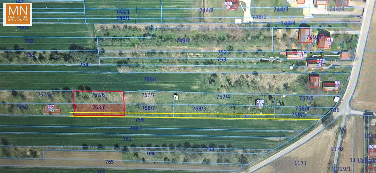 Nieruchomość składa się z 2 działek ewidencyjnych ( 757/6 , 758/6 ) o kształcie prostokąta i wymiarach 57 m x 28 m. Dojazd na całej długości 57m. Teren jest płaski, dobrze nasłoneczniony, co czyni go idealnym miejscem pod dom z ogrodem lub dwa budynki.