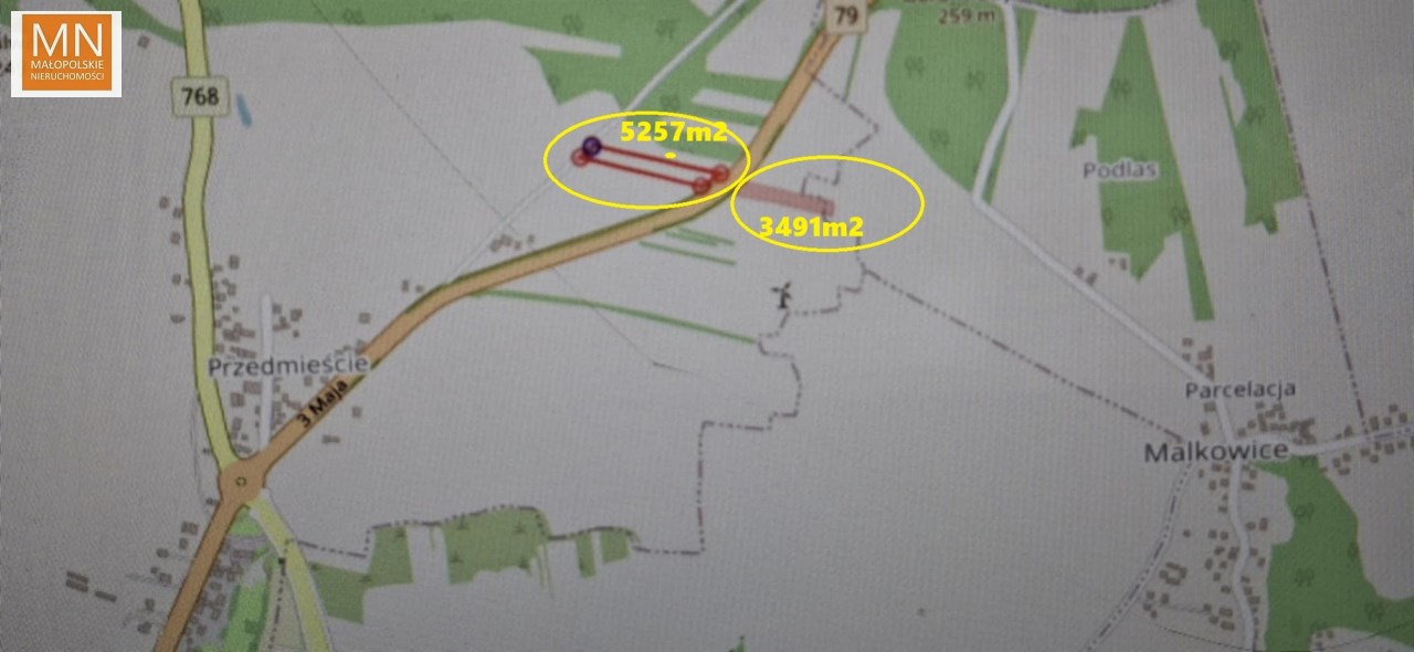 Obie działki przy wylotowej drodze z Koszyc droga krajowa 79 ( DK 79 )